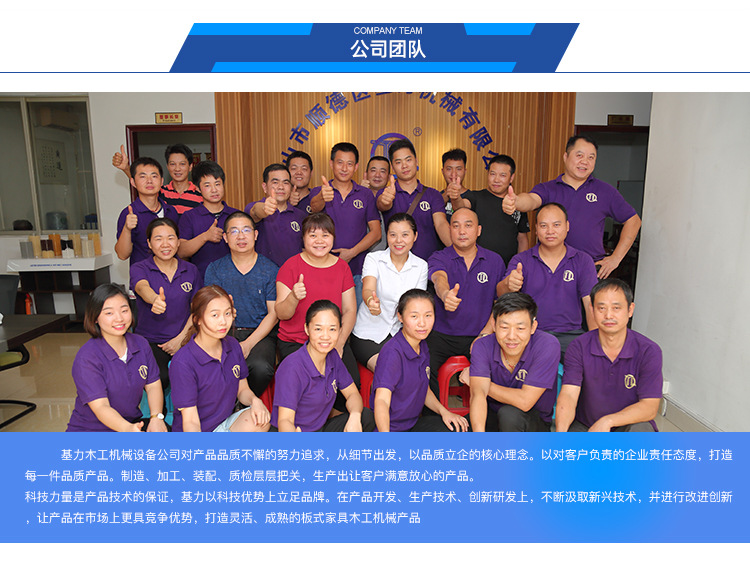 基力木工机械设备公司位于木工机械重镇——佛山市顺德区伦教镇内。我厂拥有众多专业技术人员和高素质的生产工人,坚持不断研究、开发、创新,多方吸取广大用户的宝贵意见,努力从实用灵活、适用面广、维修方便加以改进设计成高品质的木工机械产品。